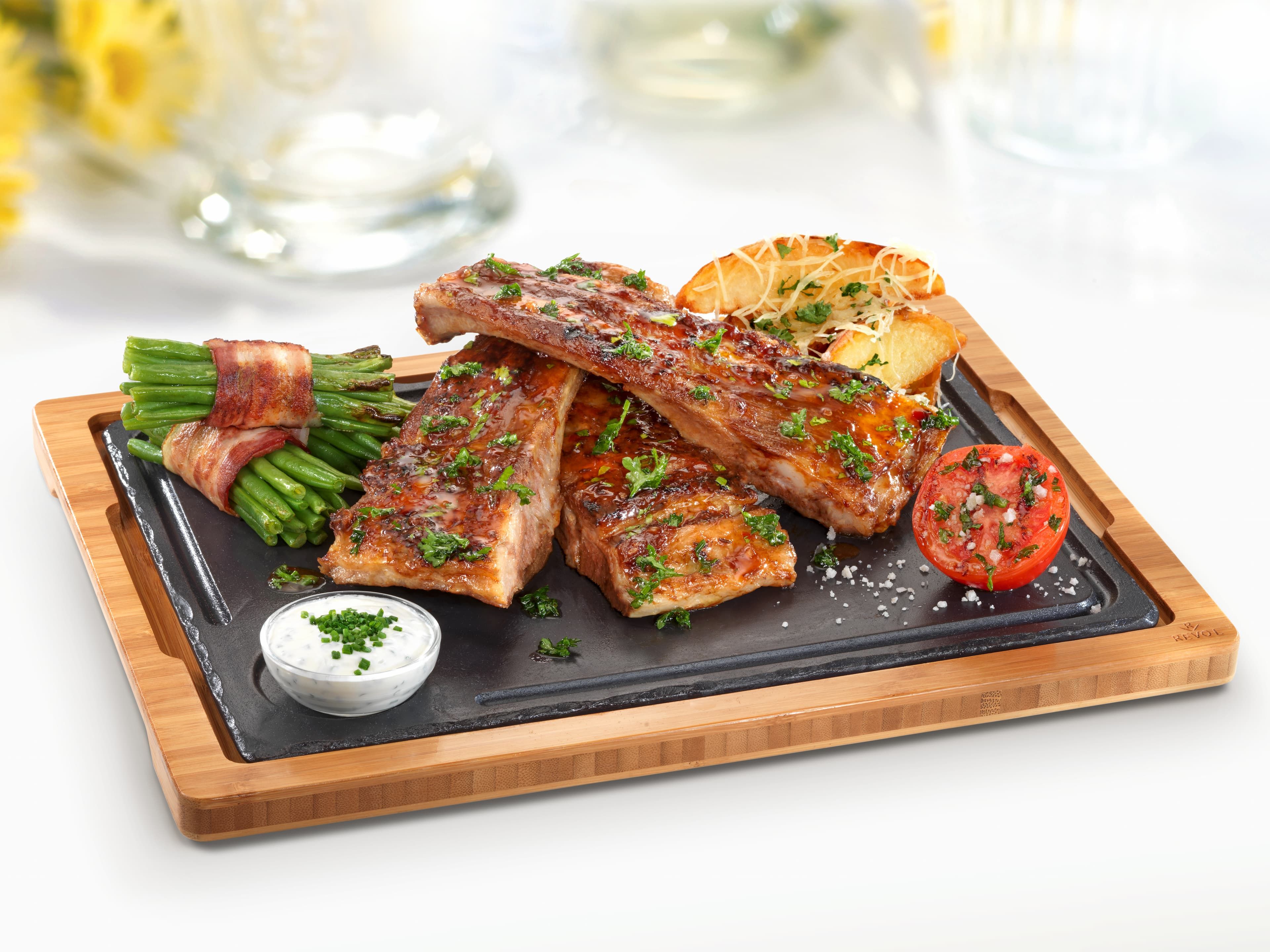 der Fleischhauer schneidet die Ripperl aus dem Mittelstück. Die Ribs sind besonders saftig mit einer schönen Fleischauflage. Durch die spezielle Schmor- und Grilltechnik entwickelt sich ein rauchiger, karamellisierter, mürber Geschmack.